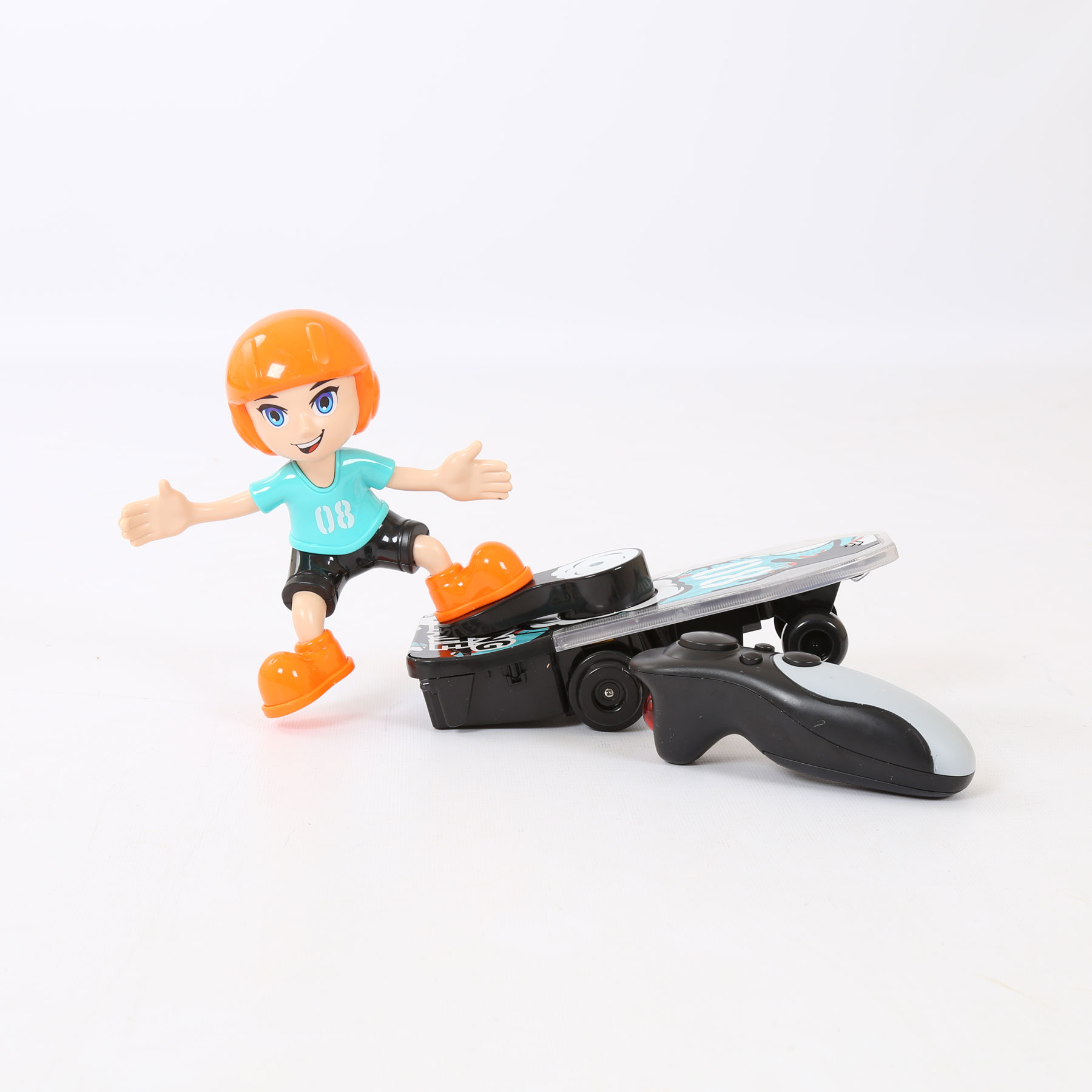 Скейтбордист на радиоуправлении, в коробке. Работает от батареек. Скейтбордист ездит и вращается под веселую музыку. На упаковке можно считать QR-код, с помощью которого, вы сможете посмотреть видео о скейтбордисте.